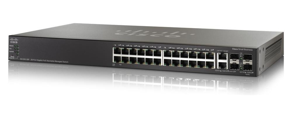 Стекируемый коммутатор Cisco SG500-28P для сетей с возможностью расширения и питанием по PoE обеспечивает идеальную технологическую основу для развертывания сетей с высокими требованиями к производительности.