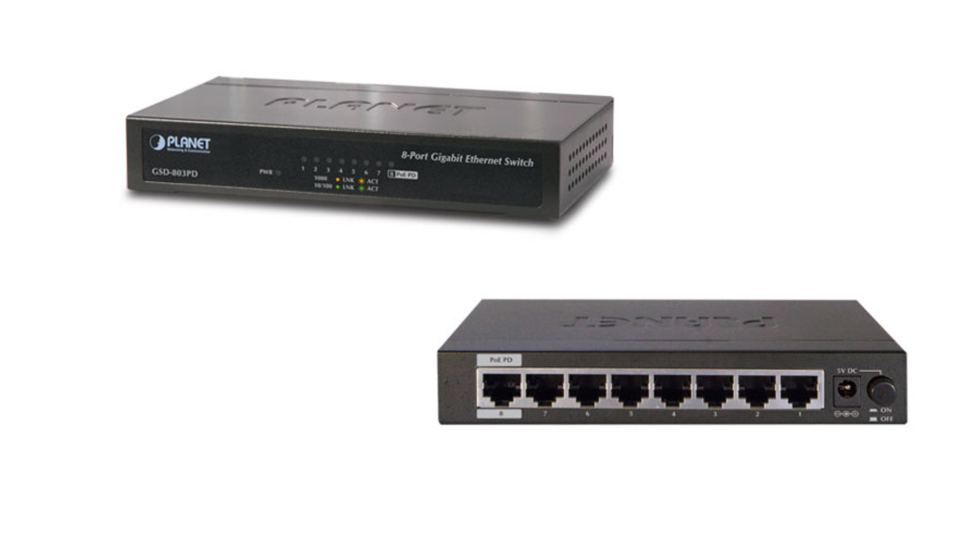 Коммутатор Planet GSD-803PD с 8x 10/100/1000Mbps портами, корпус металлический.