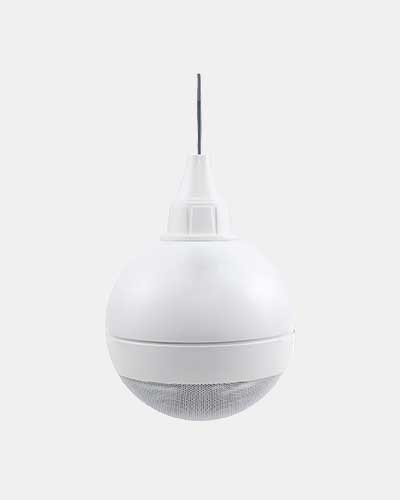 Подвесной сферический громкоговоритель ("люстра") 10/5/2,5 Вт, работает в трансляционных линиях 100В. Подключение на различные мощности разными отводами трансформатора. Современный дизайн, простая установка и подключение.