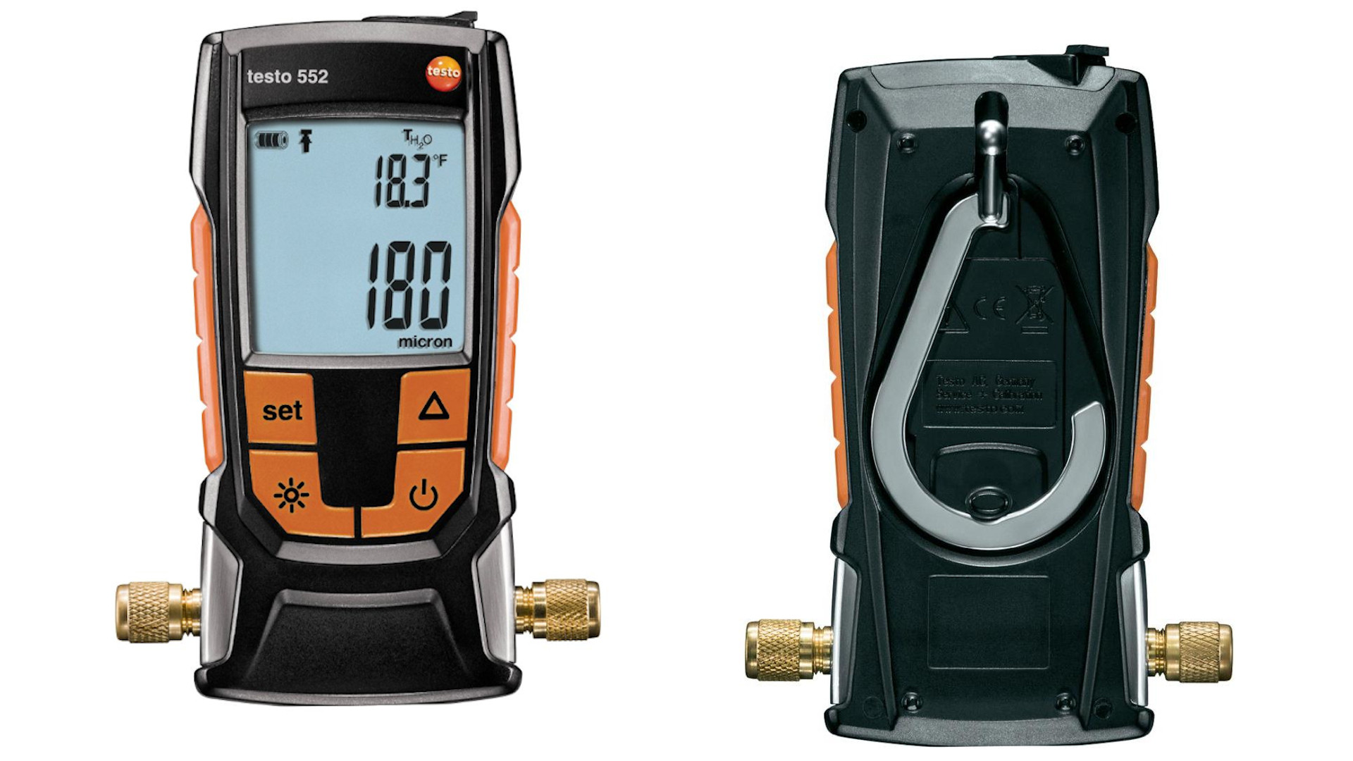 Testo 552 цифровой вакуумметр с интерфейсом Bluetooth для измерения вакуума с точностью до микрона и в реальном времени выполняет расчёт температуры испарения воды, определяющей степень осушки системы (устранение посторонних веществ, вкл. масло или инородные газы).