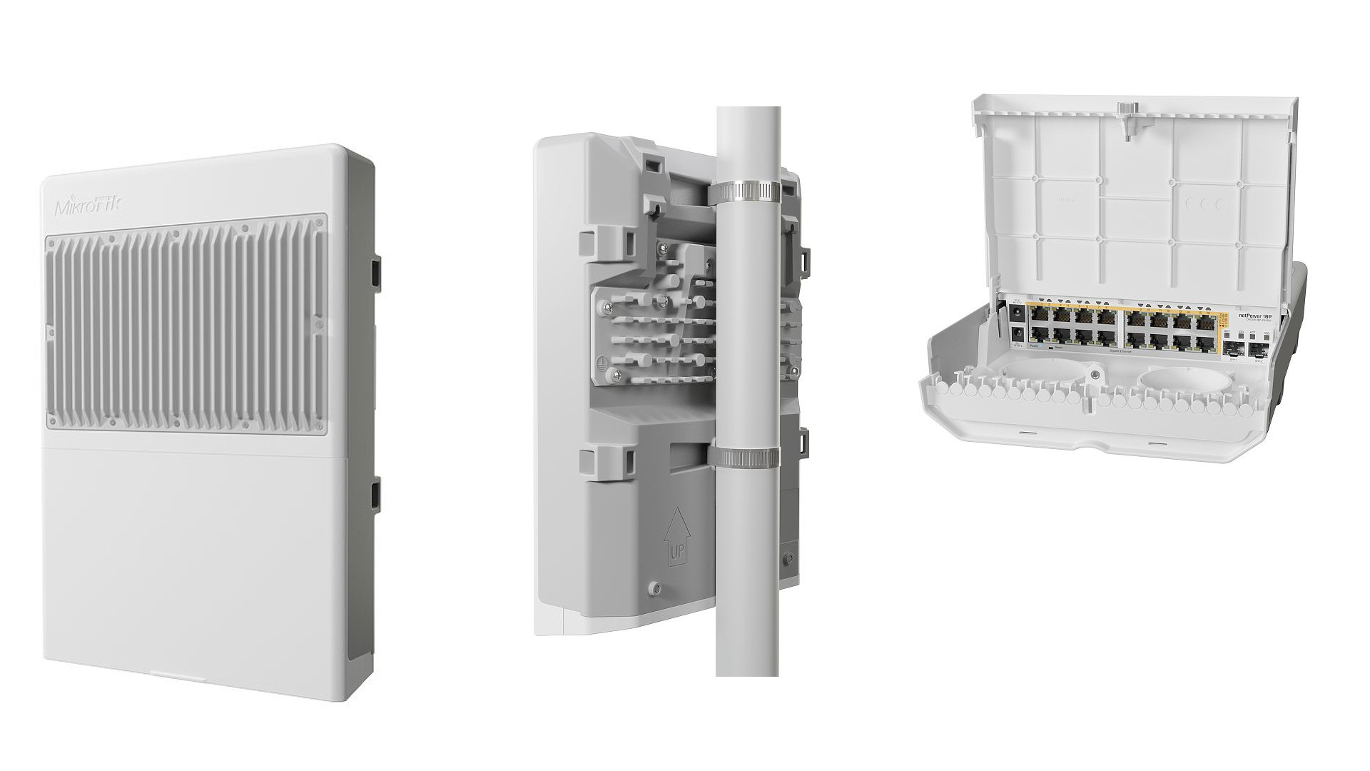 Уличный POE-коммутатор MikroTik netPower 16P во всепогодном корпусе, для размещения на мачте, вышке, тех. этаже, и пр.