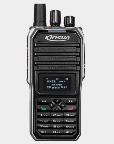 Цифровая портативная радиостанция стандарта DMR с дисплеем и клавиатурой.