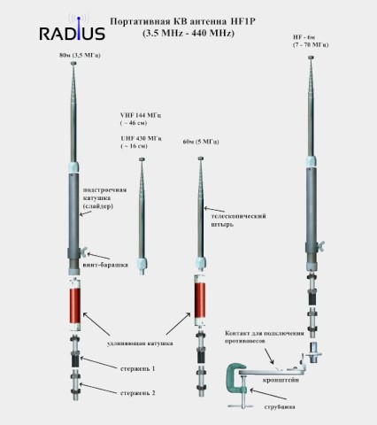 Для достижения оптимального КСВ используются противовесы (входят в комплект).