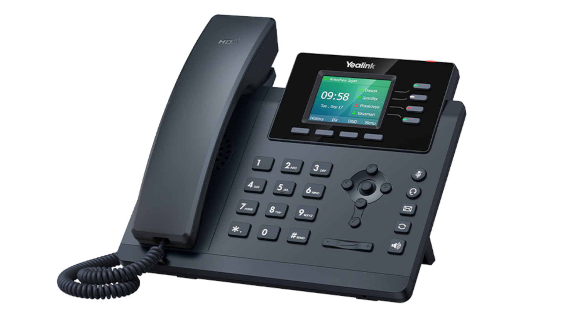 SIP-T34W поддерживает 4 SIP-аккаунта и 5-стороннюю аудиоконференцию.