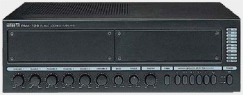 Микшер-усилитель предназначен для построения многозоновых систем оповещения и музыкальной трансляции. В устройстве предусмотрены возможность установки модулей CD/MP3 проигрывателя PAM-CDM и AM/FM тюнера PAM-T, кнопочный селектор на 5 зон, 6 универсальных входов, линейный вход для подключения АТС, 3-полосный эквалайзер для каждого входа, защита акустических систем от постоянного напряжения, светодиодные индикаторы уровня выходного сигнала и срабатывания защиты, генератор сигнала "ГОНГ". Первый и второй микрофонные входы и вход для подключения АТС являются приоритетными. С помощью дополнительных кронштейнов BKT-PA4000A усилитель может быть установлен в 19" стойку.