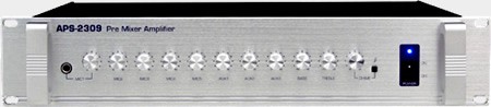 Встроенные функции сигнала, мьютирования. Раздельное управления на каждый канал и управления низкими и высокими частотами. 10 входов: 5 микрофонных, 3 AUX и 2 сигнальных