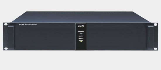 Блок программного обмена используется для реализации оперативного вмешательства в музыкальную трансляцию. Устройство управляется контроллером системы ECS-616 и предназначено для работы в составе системы тревожного оповещения. В блоке предусмотрены светодиодные индикаторы режимов работы, 4 симметричных входа для подключения источников сигнала линейного уровня, 4 симметричных выхода, 4 симметричных входа для подключения приоритетных источников сигнала линейного уровня (тревожный, таймер, удаленная микрофонная панель 1, 2).