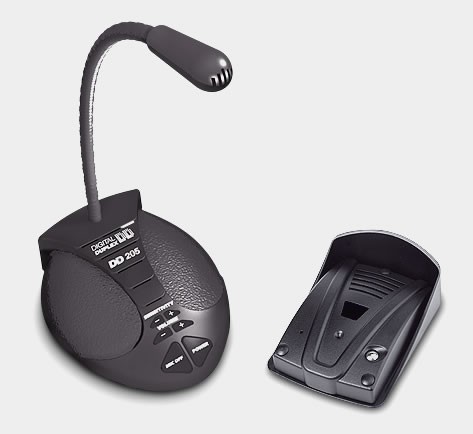 Цифровое дуплексное 3-х проводное переговорное устройство Digital Duplex DD-215G на базе аудиопроцессора Motorola предназначено для работы по схеме «клиент-кассир» через звуконепроницаемые перегородки. В данном устройстве используются 8 независимых детекторов шума, которые адаптируются к окружающему фону. Digital Adaptive Detector (DAD) - цифровой адаптивный детектор активности в течение нескольких секунд позволяет понижать наружный фон во время длительных пауз между разговорами. Использование такого устройства весьма эффективно, например, в торговых центрах, на железнодорожных и автовокзалах, в аэропортах, где уровень фонового шума достаточно высокий. Клиент может одновременно говорить и слушать оператора. Оператору же предоставлена возможность самому регулировать громкость звука и чувствительность микрофона, а так же, при необходимости, отключать микрофон, чтобы клиенту не было слышно что происходит в помещении за звуконепроницаемой перегородкой.