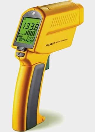 Fluke 574 высокоточный измерительный термометр с трехточечным лазерным указателем и возможностью регистрации данных используется для профессиональных и точных измерений. Отличительной особенностью данного термометра является широкий температурный диапазон, низкая погрешность, а также система лазерного указания "True Dimension" для точного наведения. Неотъемлемым плюсом данной модели является возможность регистрации измеренных данных для последующего анализа на КП с помощью ПО, поставляемого в комплекте. Объем памяти термометра 574 позволяет сохранять до 100 результатов измерений. Сравнивая 574 модель с 572, отличительной особенностью Fluke 574 является возможность измерения контактной температуры, с помощью, идущей в комплекте, термопары типа К. Измеряйте лазерным термометром Fluke 574 температуру поверхности, выявляйте неисправности в системе смазки, наличие перегрузки, короткого замыкания, разрегулированности и перегрева оборудования.
