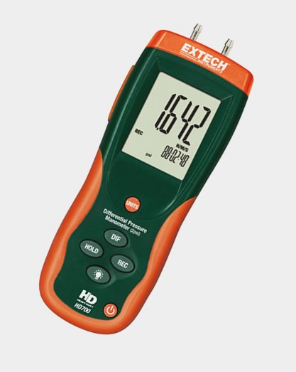 Дифференциальный манометр Extech HD700 с USB портом измеряет давление в 11 единицах измерения, которые может выбрать сам пользователь. Манометр HD700 регистрирует максимальное, минимальное и среднее измеренное показание. Измеренные данные, маномером Extech HD700, можно передать на ПК и с помощью ПО, идущем в комплекте поставки, обработать.