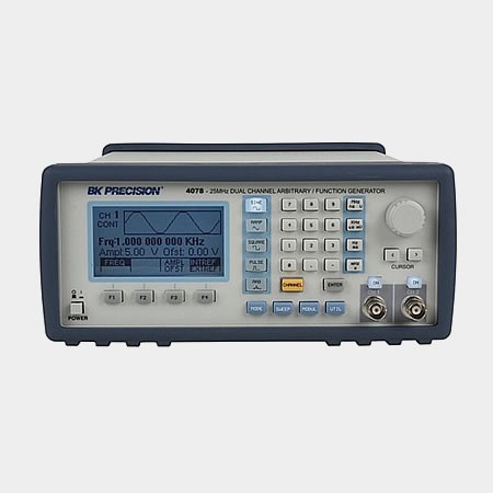 «BK Precision BK 4078 генераторы сигналов 25 МГц, 14-бит, 100 Мвыб/сек, 400 тысяч точек, имеющие типы сигналов такие как заданный импульс, пилообразный, треугольник, шумовой, Sin (x)/x, экспонента и гауссов сигнал.»